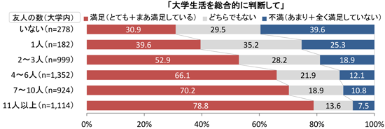 図4. 総合的な大学満足度(話をしたりする友人の数[大学内]別)