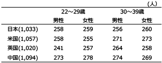 日本・米国・英国・中国の四年制大学卒以上/22歳~39歳の正規職男女 計4,204名