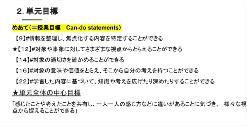 森下:小単元ごとと単元終了後など,クラスの状況にあわせてふり返り設定してください。ねらいとしたCdsに対して子どもたちがどのようにコメントしているか,変容しているか,見とっていただき指導改善に生かしていただければと考えています。