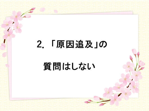 振り返る時に気を付けたいのが、保護者のかたもお子さま自身も、「原因追及」の質問ばかりしないように意識すること。