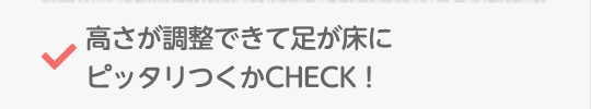 - いすに深く座り、足の裏が床について、ひざが直角に曲がる高さにする。