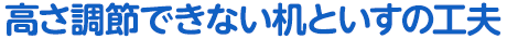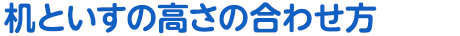 - ①のいすに座って、ひじが直角に曲がる高さに机の天板を調節する。