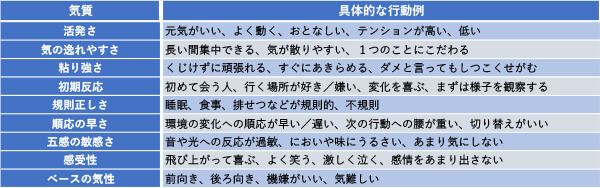 子どもは一人ひとり違う「気質」、言い換えると「その子らしさ」を持って生まれてきています。気質とは、たとえば、「活発さ」や「粘り強さ」など、心理学的には9つに分類されます。
