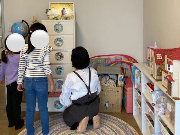 お客さまのおうちでお子さまとお片付け。自分のお部屋がきれいになるのは、どの子もうれしい!