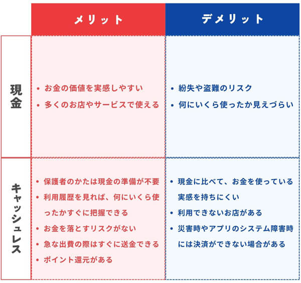 まずは、キャッシュレスお小遣いのメリット・デメリットを見てみましょう。
