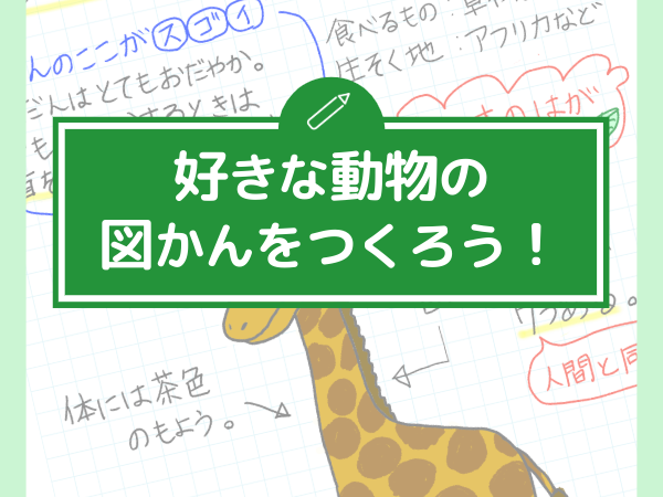 ・動物の絵は、色をぬって大きくかこう。絵から線を引いて、特ちょうを説明するとわかりやすいよ。