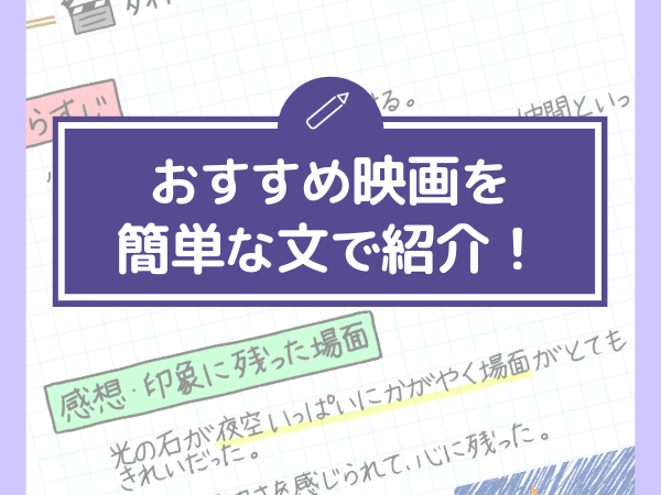 ②その映画のタイトルを書き、あらすじを2〜3文くらいでまとめます。たとえば「少年が不思議な力を持つ生物と出あった。仲間と協力して世界を救う物語」など、登場人物や物語の流れが簡潔に伝わるようにします。