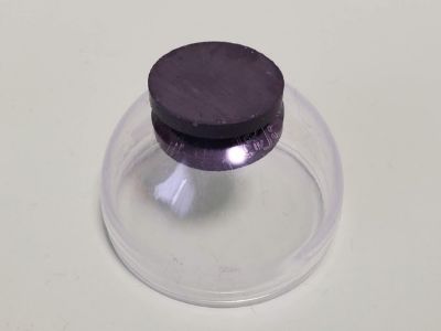 下にするカプセルトイのケースの上に磁石をのせ、うちがわからもう1この磁石をつける。