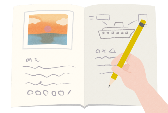 航路やおすすめの施設、海や空の景色、車や電車・飛行機での旅とのちがいなど、実際に乗船して感じたことを工夫してまとめてみよう。