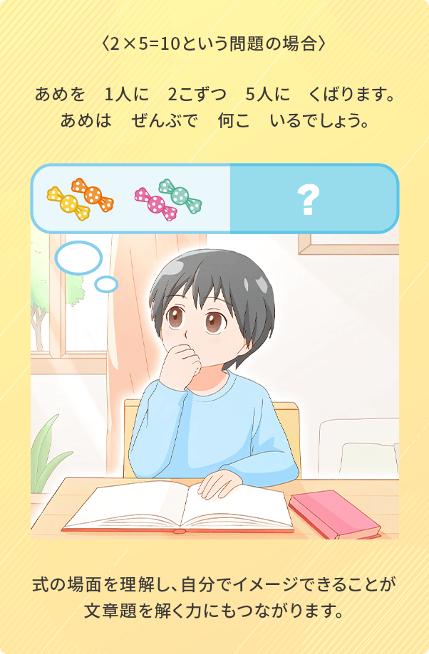 問題文をていねいに読み、しっかり理解できれば、「じゃあ、こうすればできるかも?」と問題を解く糸口を見つけて、自分で考えて解き始められるかもしれません。