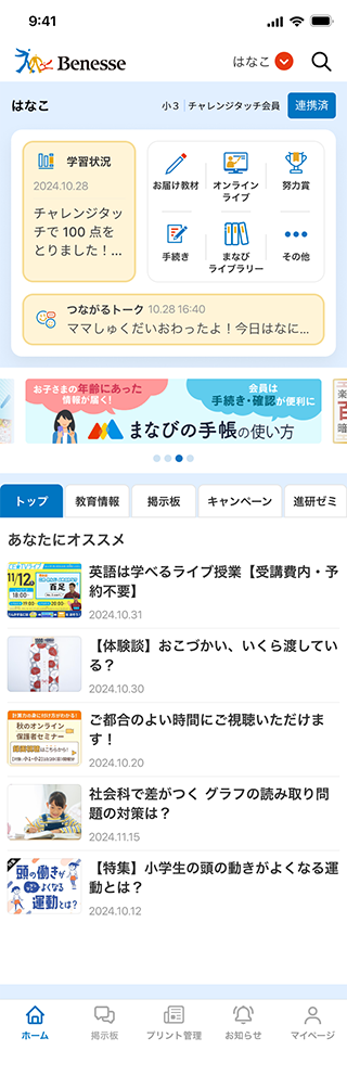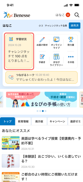 お子さまの進研ゼミの取り組みを全力でサポートします。