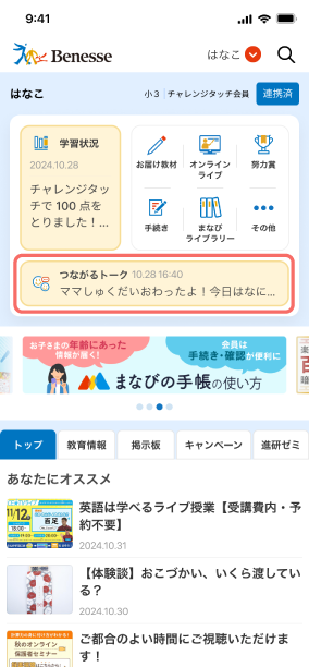 • ※つながるトークは、「チャレンジタッチ」ご利用のお子さまとおうちのかた向けのサービスです。