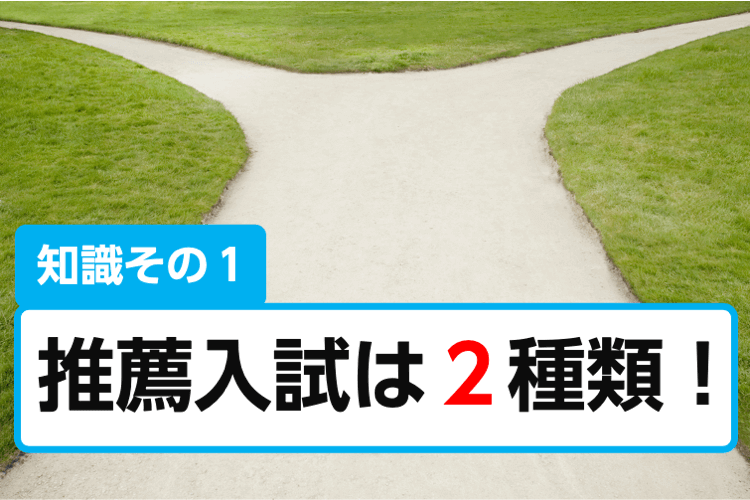 まず推薦入試は、「学校推薦型選抜」と「総合型選抜」の2つに分けられます。