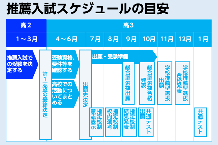 推薦入試のスケジュールを押さえ、早めの準備ができるとベター