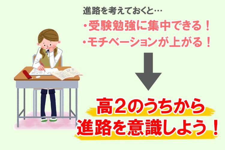進路が決まれば受験勉強のモチベーションもグッと上がるので、それだけで他の受験生より一歩リードできるメリットもあります。