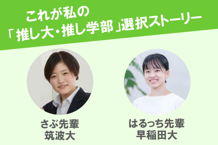 セミナー後半では、現役大学生2名が『これが私の「推し大学・推し学部」選択ストーリー』をテーマに、進路選択の体験談を話してくれます。