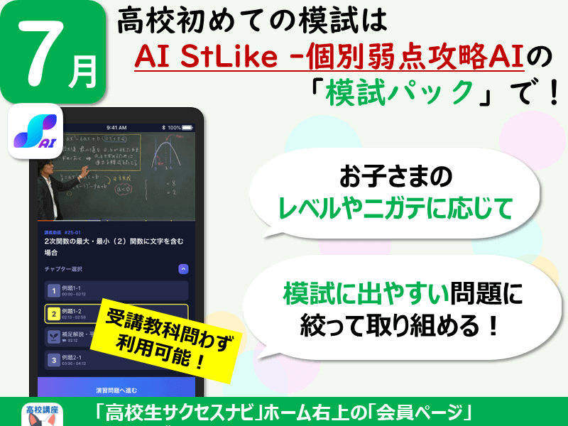 【7月】高校初めての模試。対策は「AI StLike -個別弱点攻略AI」で!