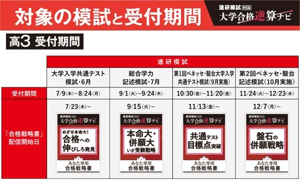 ※進研模試/ベネッセ総合学力テストに対応。詳しくは「講座ガイド」の「大学合格逆算ナビ」のページをご覧ください。