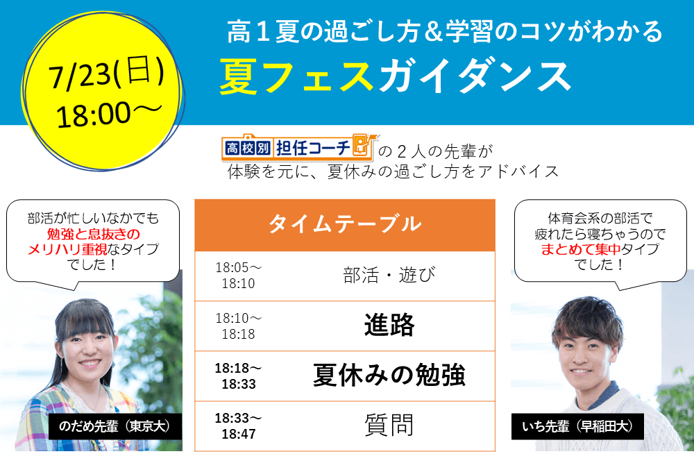 夏休みが大充実すること間違いなし!高1夏の過ごし方&学習のコツがわかるガイダンス!