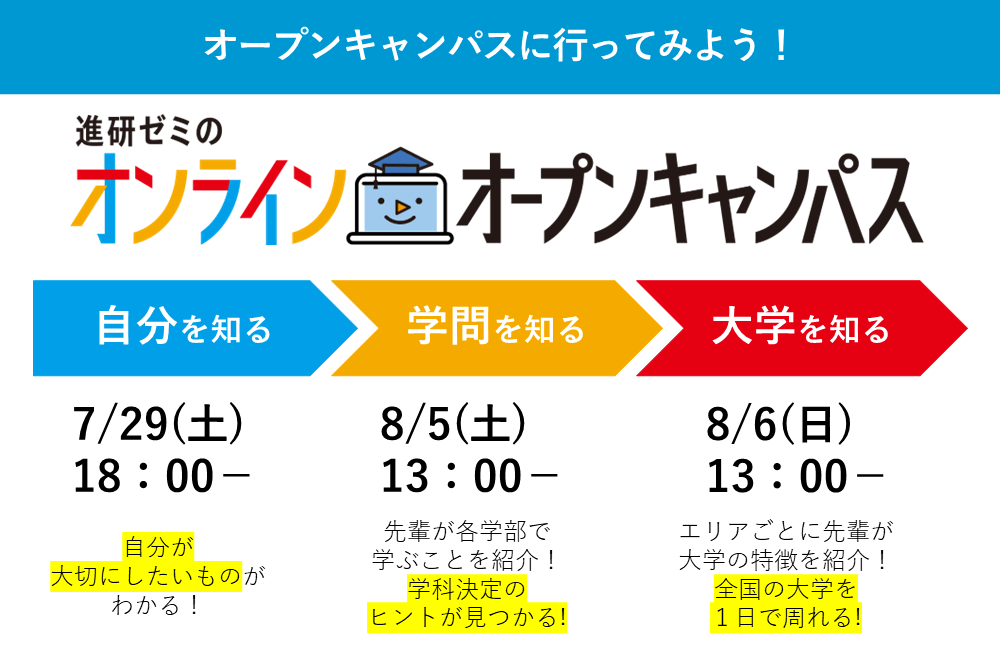 などなど、進路に関する疑問を解決するために「進研ゼミのオンラインオープンキャンパス」に参加してみましょう。