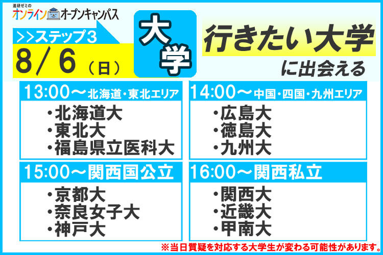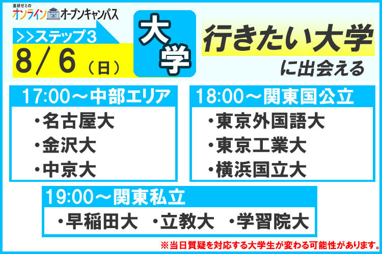 オンラインオープンキャンパス【ステップ3】大学を知る!先輩チューターの「リアル」な各大学紹介