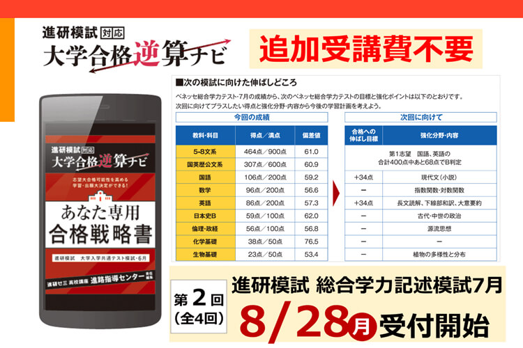 【8/28受付開始】進研模試対応 大学合格逆算ナビでお子さま専用の「合格戦略書」をお届け!(追加受講費不要)
