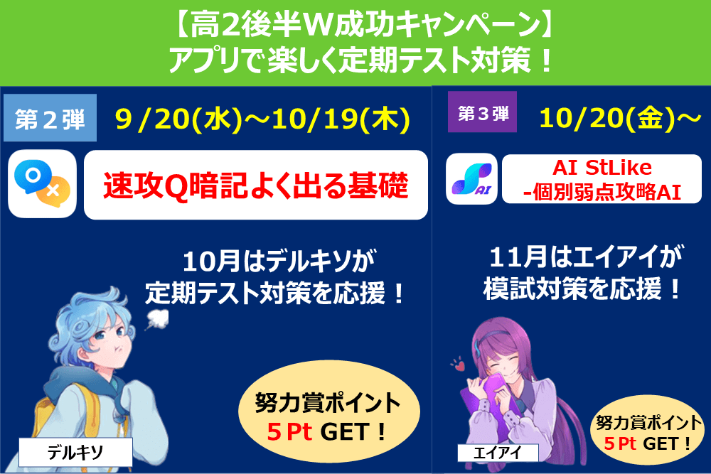 9月号から始まった、楽しみながらアプリを活用して勉強が進められる「高2後半W成功キャンペーン」の第2弾がスタートします!