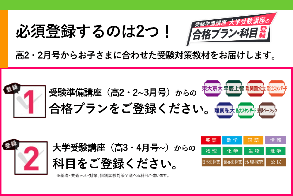 ※「受験ベーシック合格プラン」を登録された方には、「国公立スタンダード合格プラン」の冊子をお届けします。