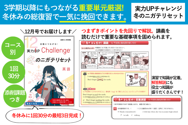 12月号では高1・2学期範囲を要点復習できる「実力UPチャレンジ」をお届けします。