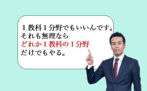 西野:1教科1分野だけ、それが無理ならどれか1教科の1分野だけでもいいんです。