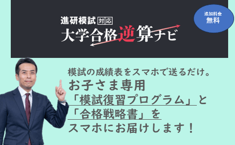 「大学逆算ナビ」で模試の結果を提出すると即配信される「模試復習プログラム」が、模試の復習には手軽で効率的にできてオススメです。
