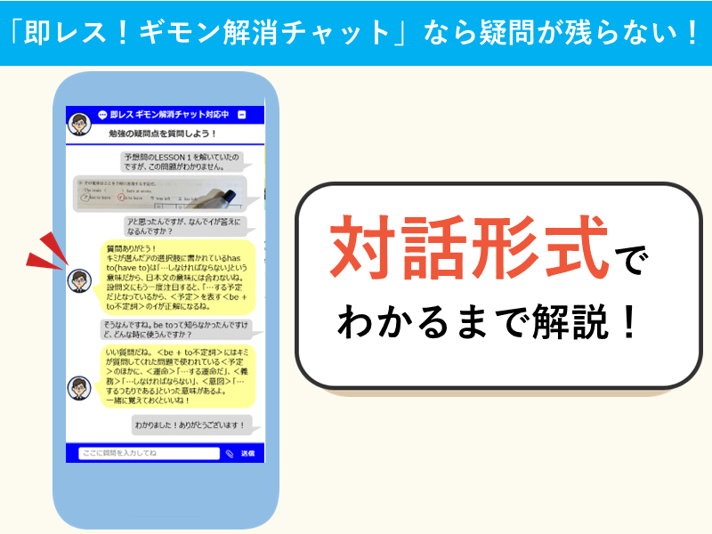 そこで、本記事では定期テスト直前に疑問を解消して、スッキリと本番に臨める「即レス!ギモン解消チャット」についてご紹介いたします。