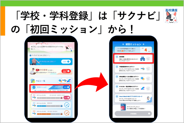 「初回ミッション」にはほかにも高校講座を使いこなすために必要な作業が入っているため、ぜひ高校が始まる前に済ませておきましょう。