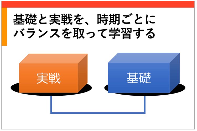 毎日の学習の中に、どれだけ基礎と実戦の学習をバランスよく組み込めるか