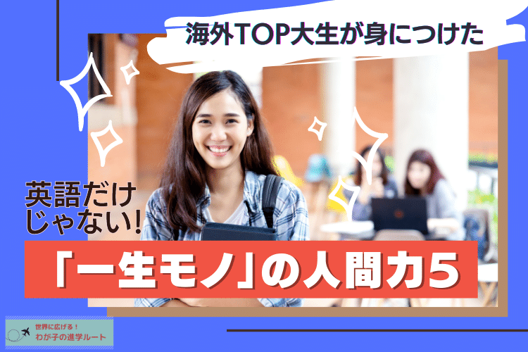 海外留学をすれば、英語力は当然のように身に付きます。でもそれだけでなく、海外大で学ぶことで培われるスキルが、お子さまのこれからの人生の中で、一生役立つ「人間力」になっていくのです。これこそが、海外留学の本当に魅力と言ってもよいでしょう。