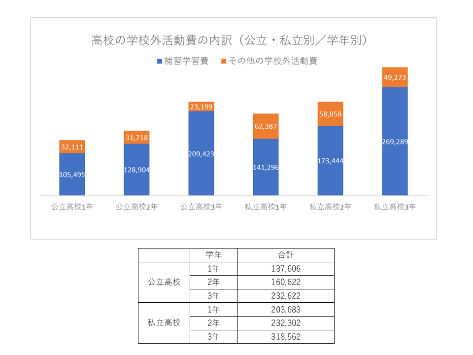 学校外活動費は、補助学習費とその他の学校外活動費に分かれます。