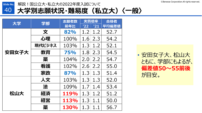 安田女子大、松山大(一般)