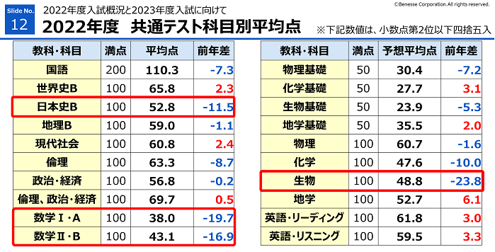 今年の1月に行われた共通テストは問題が難化して平均点が大きく下がりました。