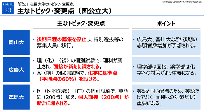 個別大の入試概況の前に23年度入試の主な変更点をお伝えします。
