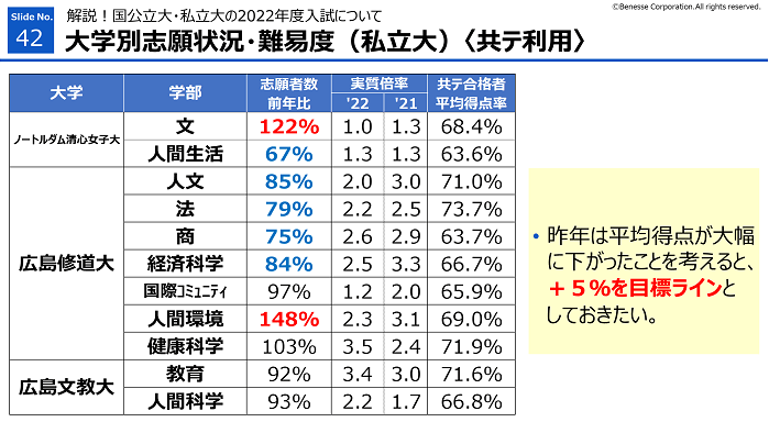 ノートルダム聖心女子大、広島修道大、広島文教大、安田女子大、松山大(共通テスト利用)