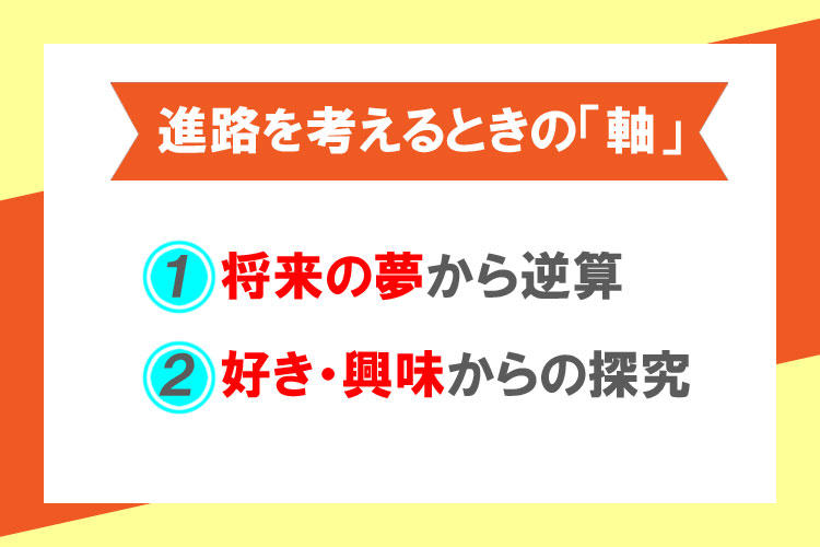 なかなか進路が決められないお子さまは、こちらの考え方を「軸」にしていくと考えやすくなります。
