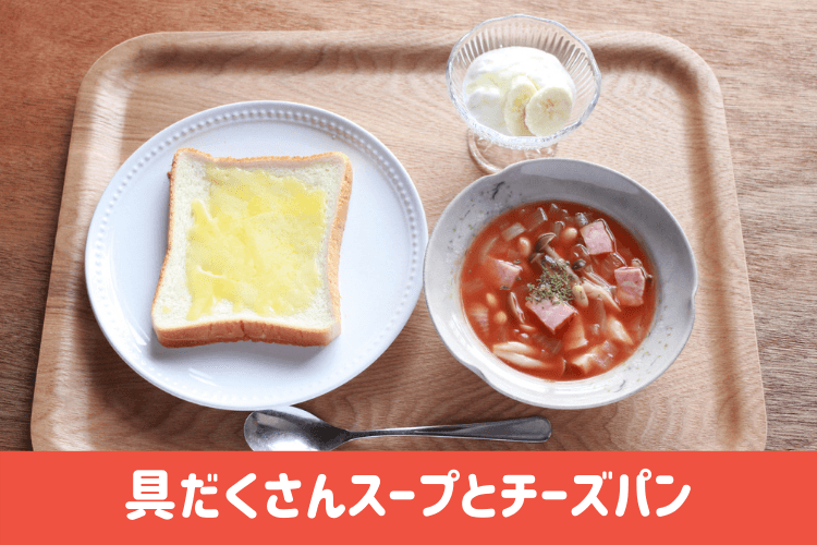 おすすめ朝食メニュー:具だくさんのスープとチーズパン