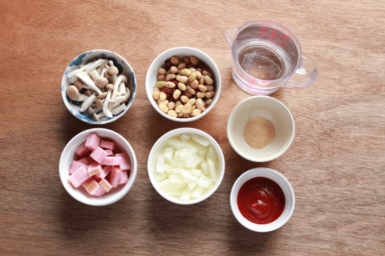 1.ミックスビーンズ以外の材料は、食べやすい大きさに切る。