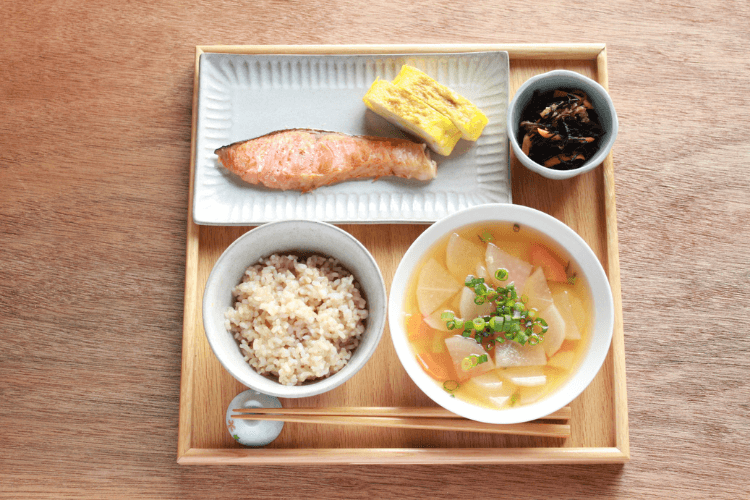 おすすめ朝食メニュー:具だくさんのお味噌を中心にした和食