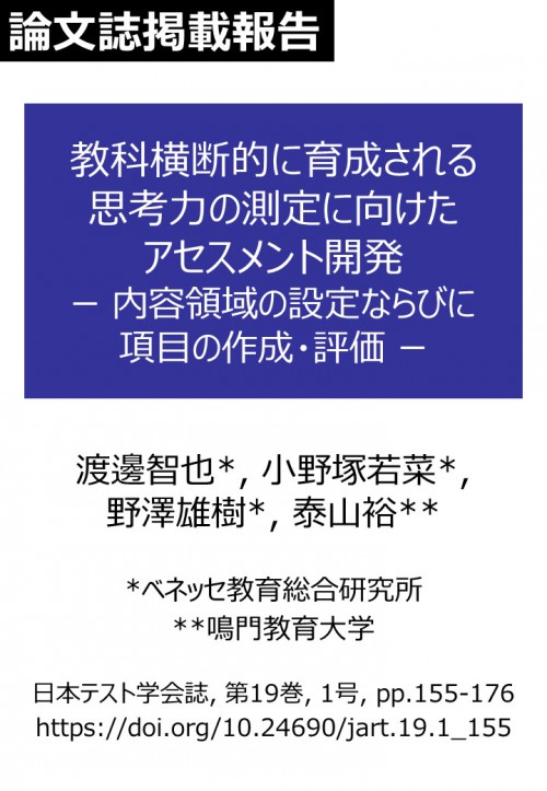 論文掲載報告「教科横断的に育成される思考力の測定に向けたアセスメント開発」 (日本テスト学会誌)