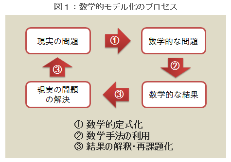 職業活動や市民生活、研究活動等において直面する問題を、数理モデルを構築して解決する力、すなわち、定量化や幾何学化等により事象から数理モデルを抽出し、そのモデルに対して数学的な処理や分析を施し、得られた結果を元の問題場面に即して解釈することのできる力
