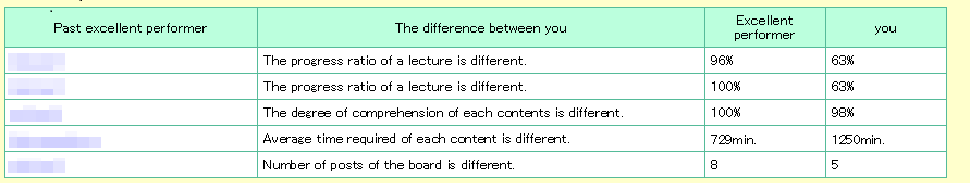 また,学習者は,学校の成績が良い人,創造的な仕事をした人,良い就職をした人,など様々な自分の目的に対して成功してきた人を探し出し,できる限り多様な他者を観察することにより,自分自身がその目的に達する方法を獲得できます。このシステムでは,学習者に類似の学習履歴を持っていて,学習者の目標に近い他者をできるだけ多様に推薦する機能も持っています。また,このようなeポートフォリオ自身がピア・アセスメントにより他者から評価される仕組みも持っています。私は,eラーニングのガイダンスのときにはいつも,「みなさんは学習者であると同時に,みなに学ばれる教材になってください」と説明するようにしています。他者から学ぶと同時に他者から学ばれる人材になるということは,社会文化的な発達の上で本質的な目標になるからです。私の研究室のLouvigné(2015)は,SNSにおける他者の学習日記を推薦する仕組みを開発し,’Samurai’に組み込みましたが,他者の学習動機から見事に学習動機が学ばれることをデータから示しています。特にSNSによる「学習日記」では,学習者が第一人称で書いており,それが有効に働き,他者の情意から学習動機の向上を導けたと分析しています。ヴィトゲンシュタイン,ヴィゴツキーも「私ことば」を重視して,レイブとウェンガーも「語り」の重要性を指摘しています。「私ことば」での記述こそが,他者からの学びを促進できると考えられるのです。
