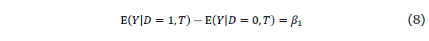 は事前テストの真値Tが同じだった場合の事後テストの平均群間差となるので、ダミー変数の回帰係数