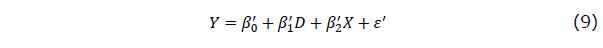 という重回帰分析を行うということになります。このときに、処遇効果を表すと考えられるダミー変数Dの回帰係数