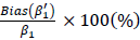 で定義すると、プラス方向のバイアスの最大値 0.211 (図2-bの左上) の相対バイアスは36.1%、また絶対値が最大となるマイナス方向のバイアス-0.232 (図2-bの左下) の相対バイアスは-39.8%となり、実質的にもかなりの大きさのバイアスであることがわかります。なお